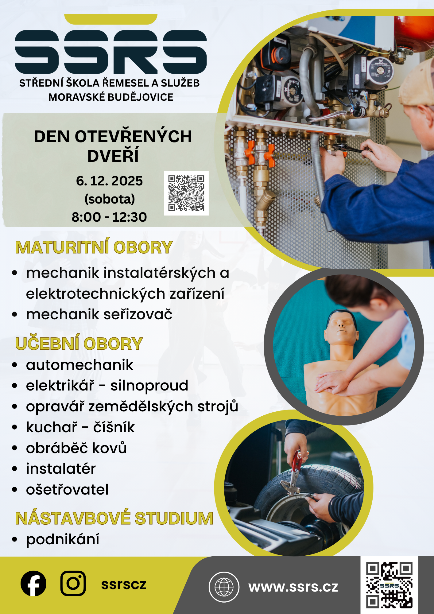 Otevřené budou všechny budovy školy – více informací najdete v odkazu Den otevřených dveří SŠŘS MB .