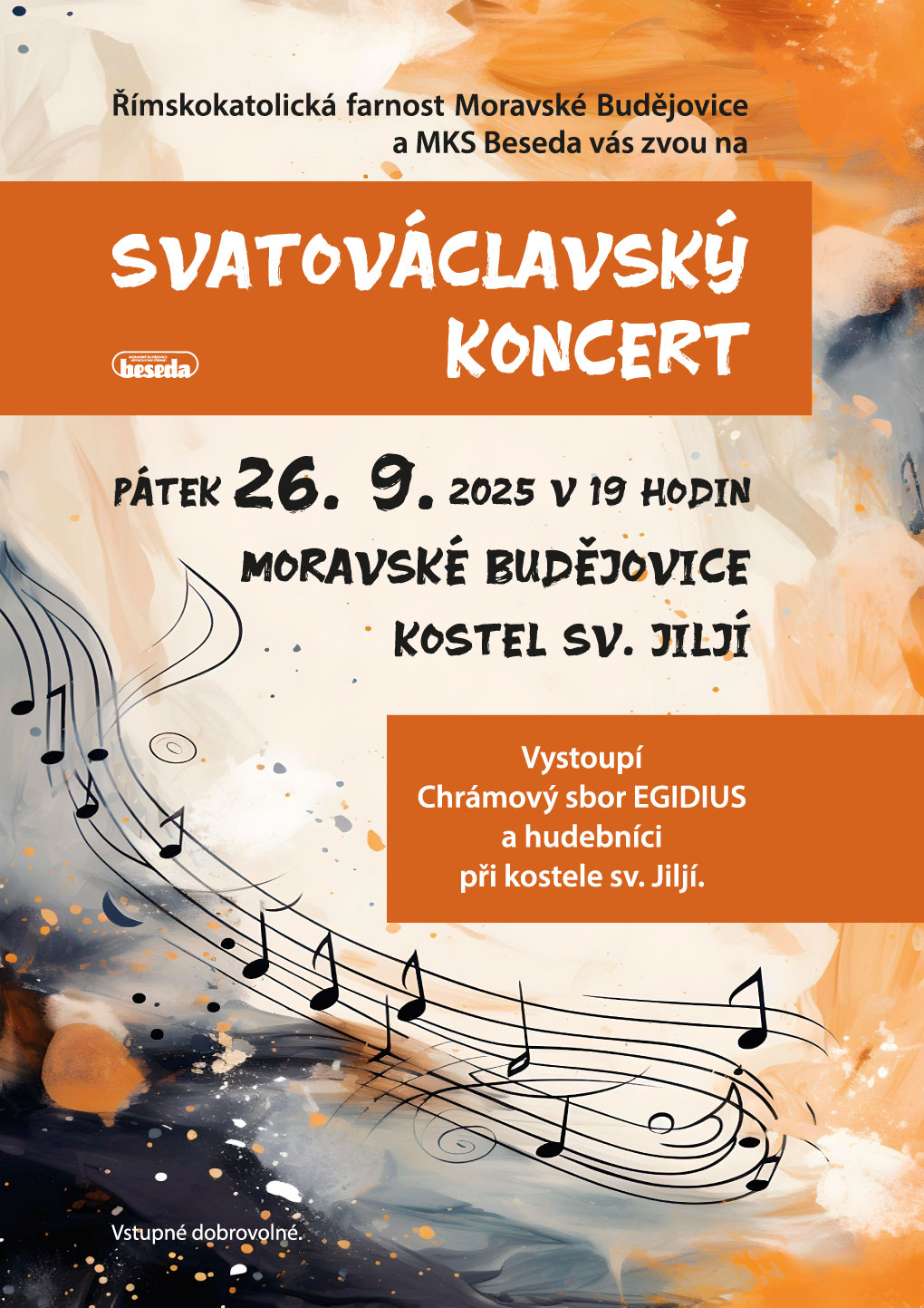 Vystoupí Chrámový sbor EGIDIUS a hudebníci při kostele sv. Jiljí. Vstupné dobrovolné.