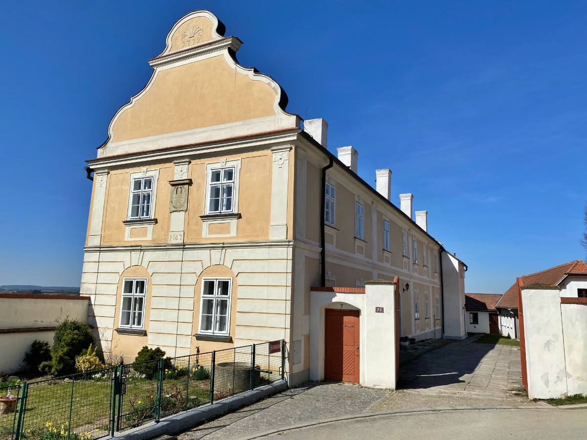 Součástí areálu je také historická fara (západně od kostela), která sloužila jako zázemí pro duchovní správu města. Na průčelí štítu je umístěna pamětní deska, která připomíná působení spisovatele P. Václava Kosmáka v Moravských Budějovicích. Stavba prošla řadou úprav, ale dodnes si zachovává barokní charakter a významné postavení v životě města.